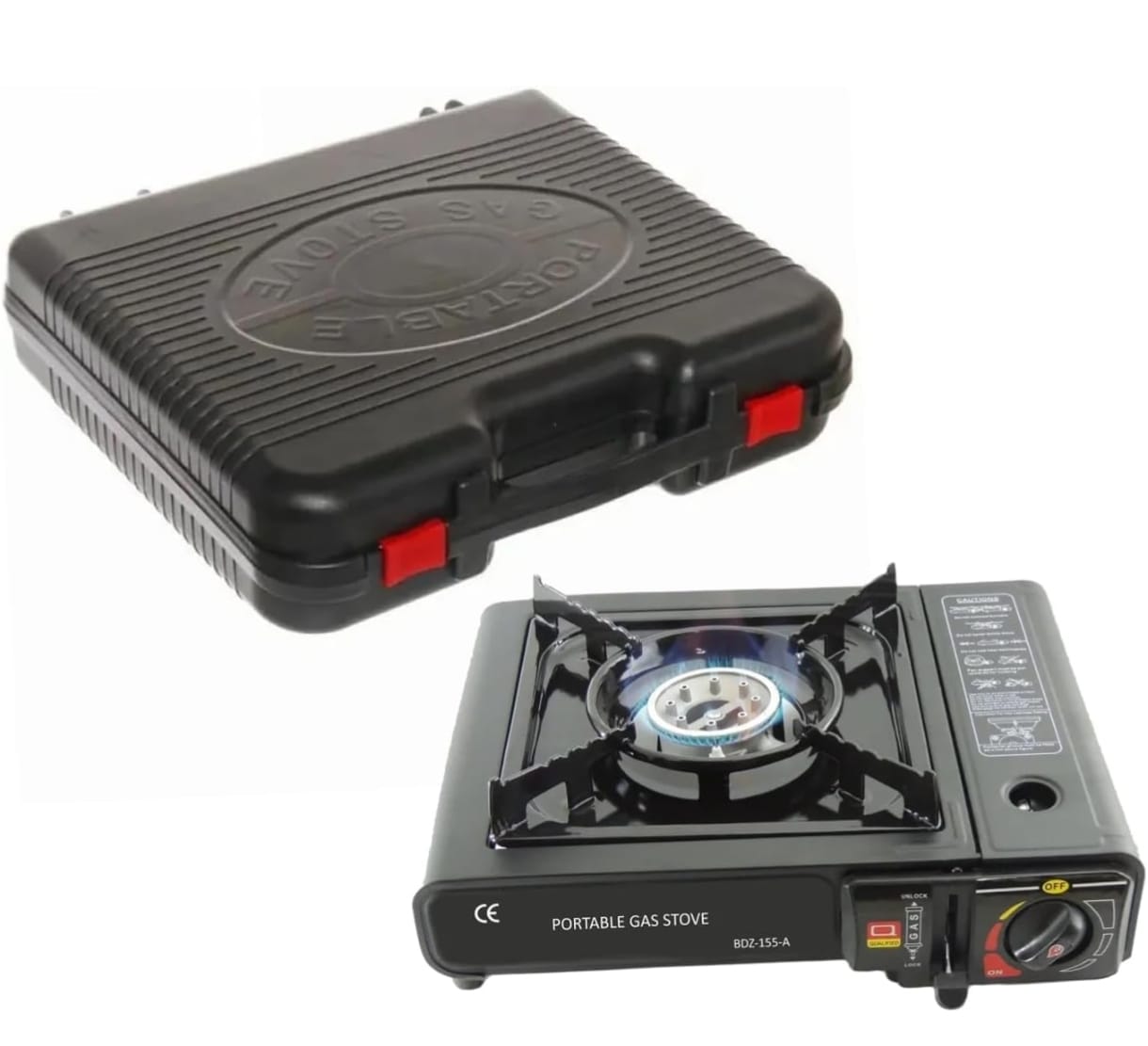 Hacer Portable Camping Gas Stove Cooking Gas burner with Carrying Case for Outdoor Camping Hiking Trekking - (Pack of 1, Black, 34 x 26 x 7.5 cm),Stainless Steel