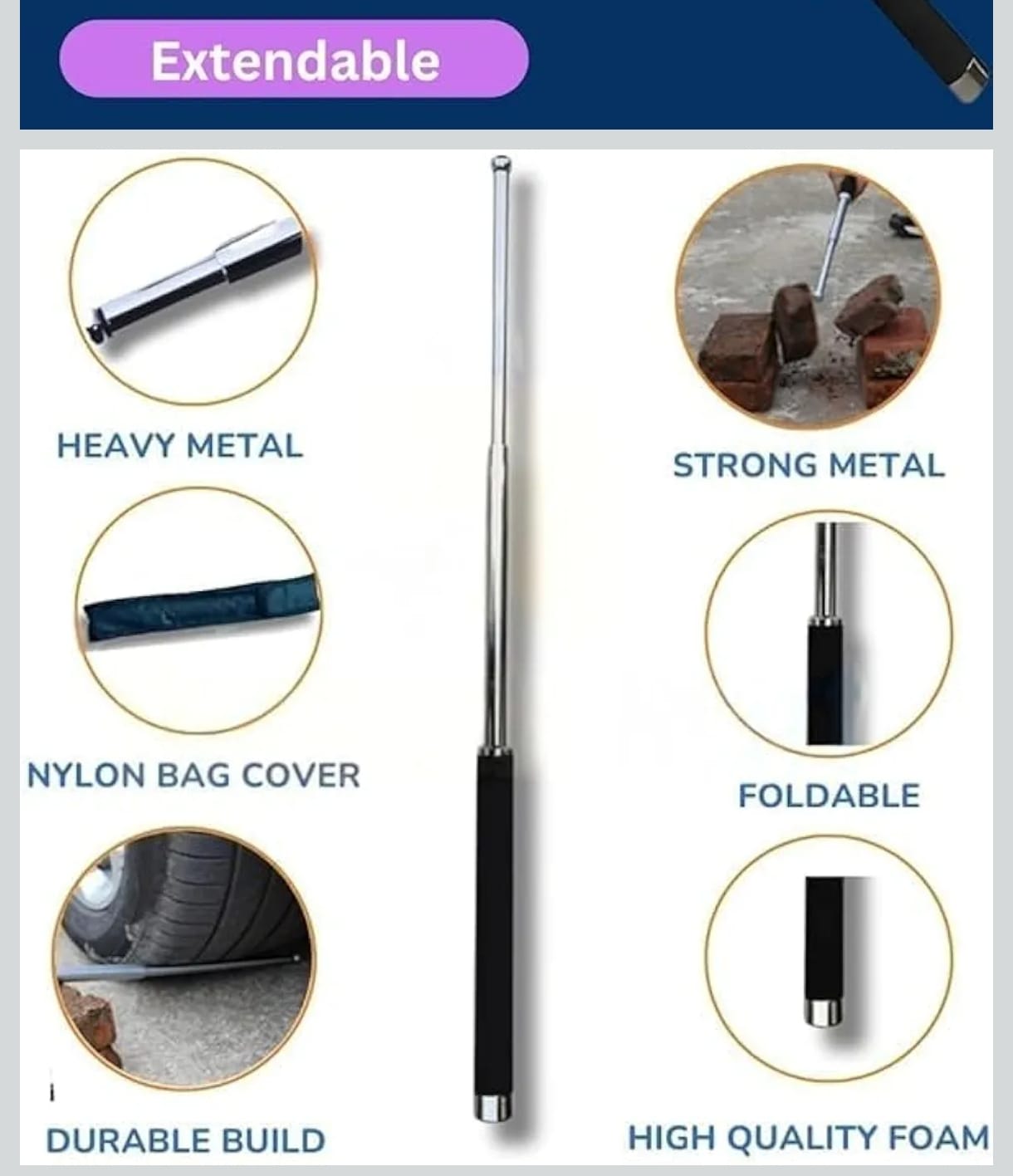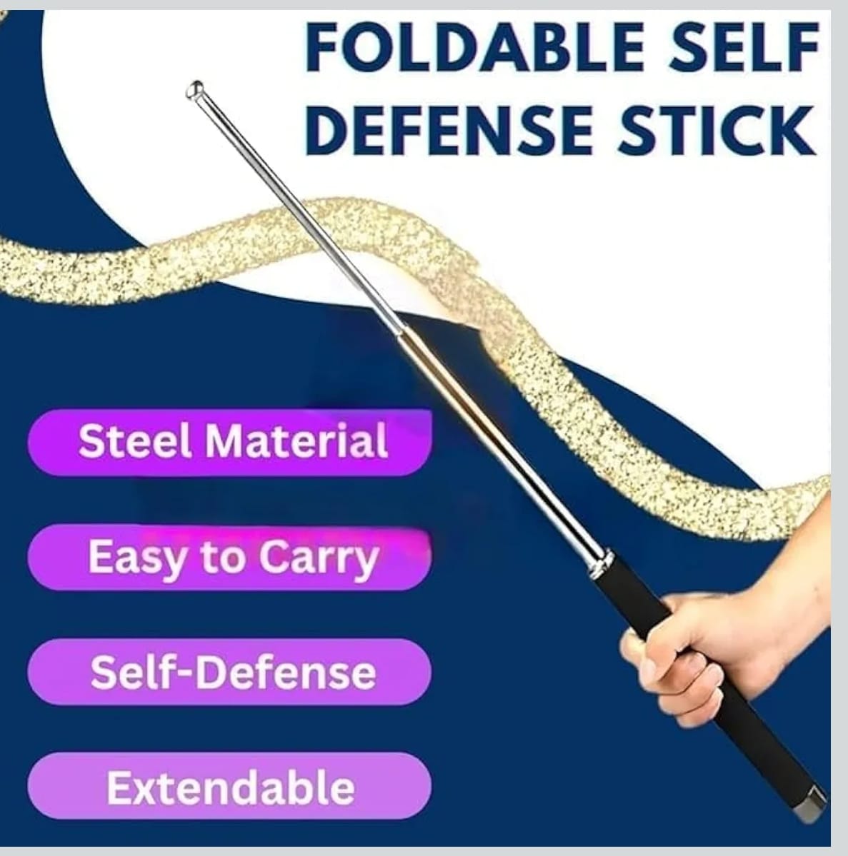 Stainless Steel Self-Defense Foldable Pointer & Safety Hiking Stick | Compact, Extendable Wand with Comfortable Grip & Nylon Bag | Ideal for Car, Office, Indoor & Outdoor Use
